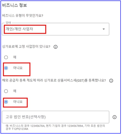3️⃣ 구글 애드센스 싱가포르 세금 정보 설정 방법