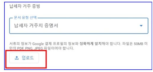 ✅ 납세자 거주지 증명서를 업로드한 후, 제출 버튼을 누릅니다.