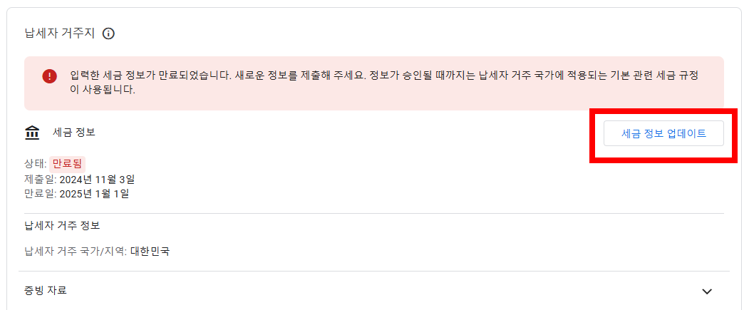 구글 애드센스 납세자 거주지 세금정보 업데이트 완벽 해결법(실제 승인 3시간)
