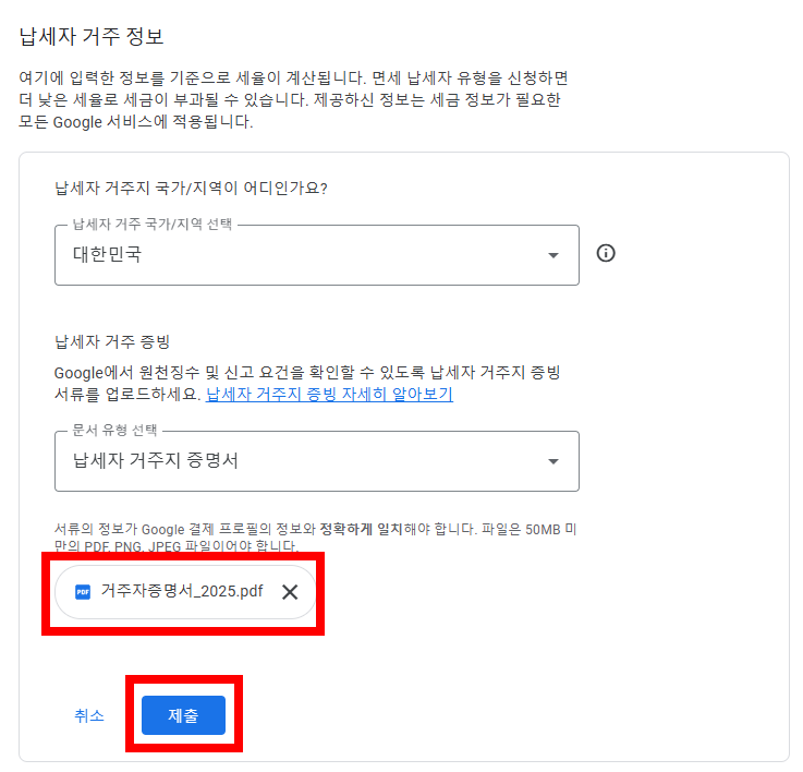• PDF 파일을 구글 애드센스 세금정보 제출 화면에서 업로드하면 됩니다.
