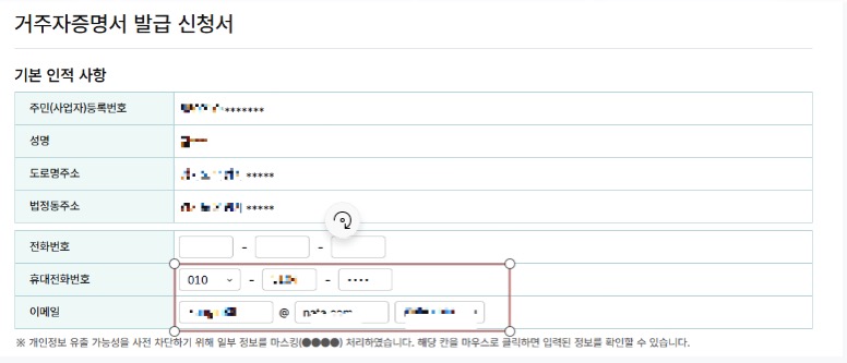 거주자증명서 발급 신청