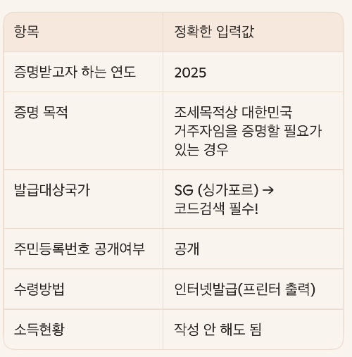 그래서 한국-싱가포르 조세협정에 따라 원천세 0% 혜택을 받을 수 있는데, 이를 증명하려면 국세청 거주자증명서가 매년 필요합니다.